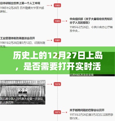 在探索历史的过程中,我们总会遇到许多未知和神秘的事件,以历史上的12月27日为例,这一天是否发生过某些特殊事件?如果我们要上岛,是否需要打开实时活动?本文将围绕这一问题展开探讨,带领读者走进历史的深处。历史上的12月...