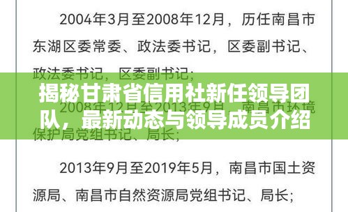 随着金融行业的不断发展,甘肃省信用社作为地方金融机构的重要一员,在推动地方经济发展、服务乡村振兴战略等方面发挥着举足轻重的作用,甘肃省信用社迎来新一轮的领导团队调整,本文将为您深入解读这一重要事件,带您了解新任领导团队的最新动态。