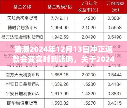 本文仅供参考和科普之用,关于2024年12月13日冲正返款是否真正实现实时到账还需结合实际情况和技术发展进行进一步研究和探讨。