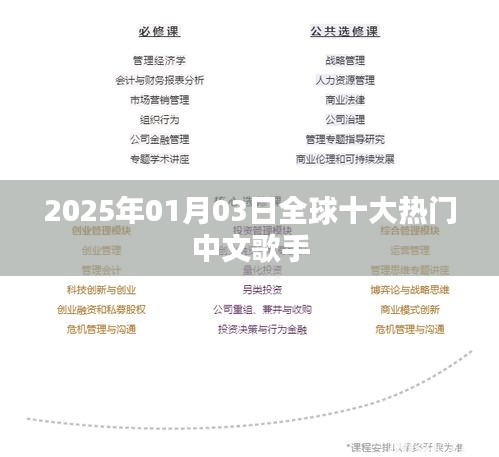 随着全球音乐文化的交流与融合,中文歌曲逐渐走向世界舞台,在即将到来的2025年1月3日,全球范围内涌现出众多优秀的中文歌手,本文将介绍其中十大热门中文歌手,他们以其独特的音乐风格和出色的表演才华,赢得了全球乐迷的喜爱。